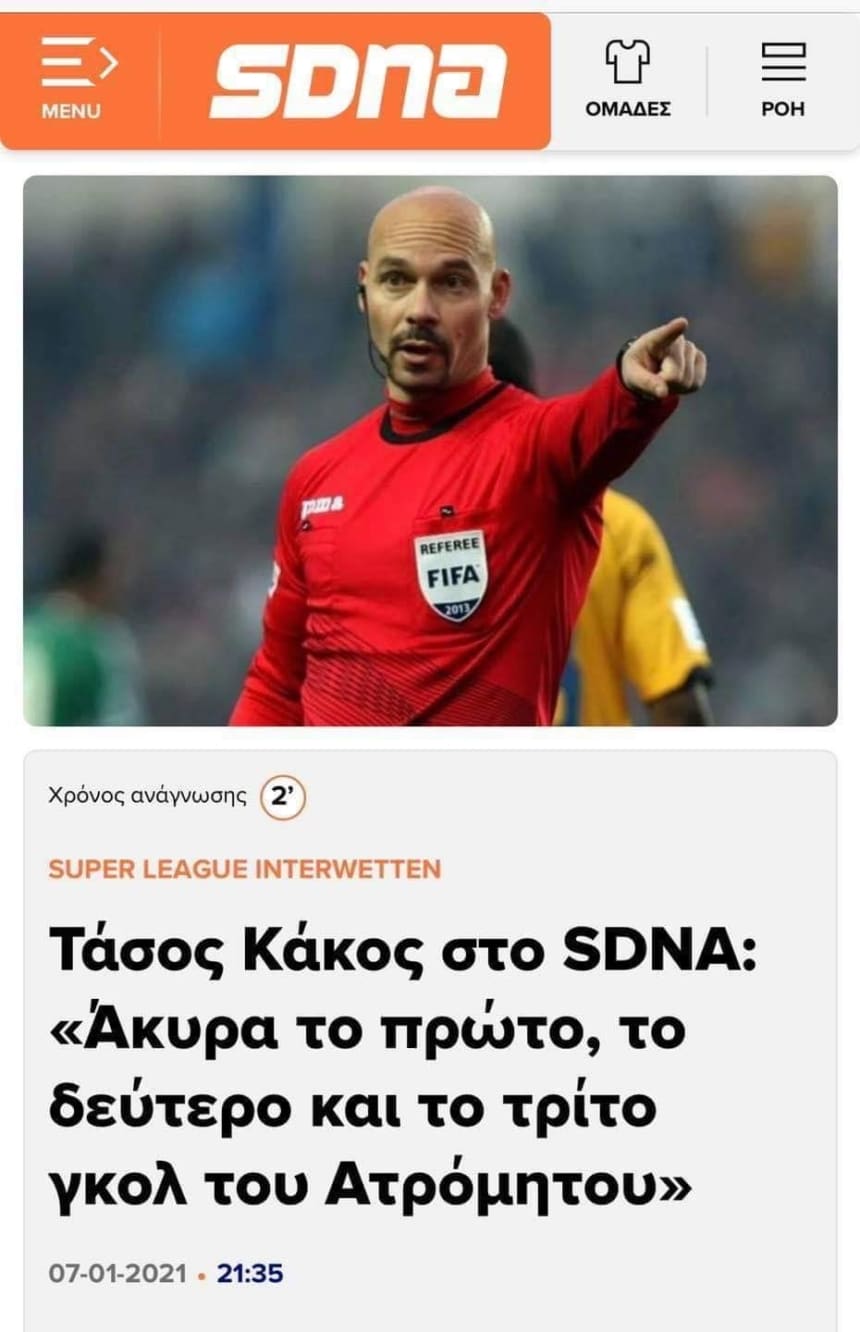 Αφού είπε ο Τάσος Κάκος ότι και τα τρία γκολ του Ατρομήτου με τον ΠΑΟΚ έπρεπε να ακυρωθούν, εμείς δεν μπορούμε να πούμε κάτι... Διαβάστε παρακάτω...